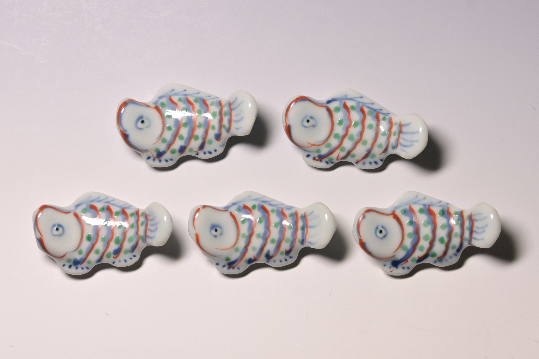 ●未使用と思われる 美品● 【マッジョーレ美術】 川瀬満之 色絵魚箸置 共箱 本物保証  [検]古余呂技窯