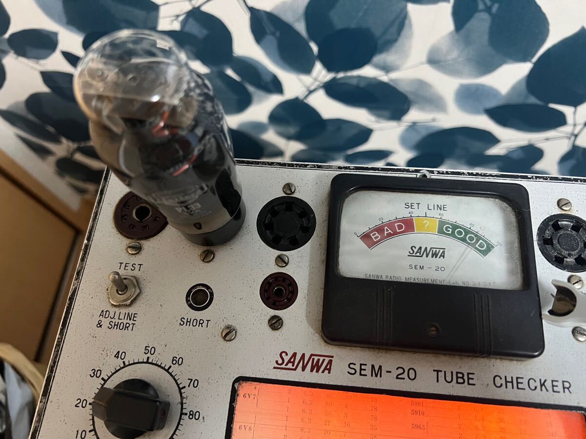 当方の試験機で同型式の未使用の真空管を試験すると85程度の値を示しますので基準として参考にしてください。