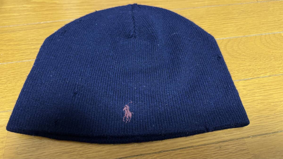 ラルフローレンのニット帽です。サイズはフリー、色はネイビーです。ほつれがありますが着用には問題ないです。
