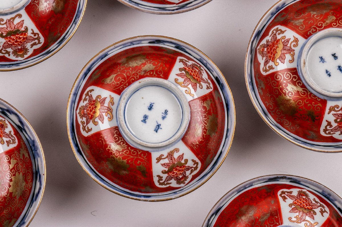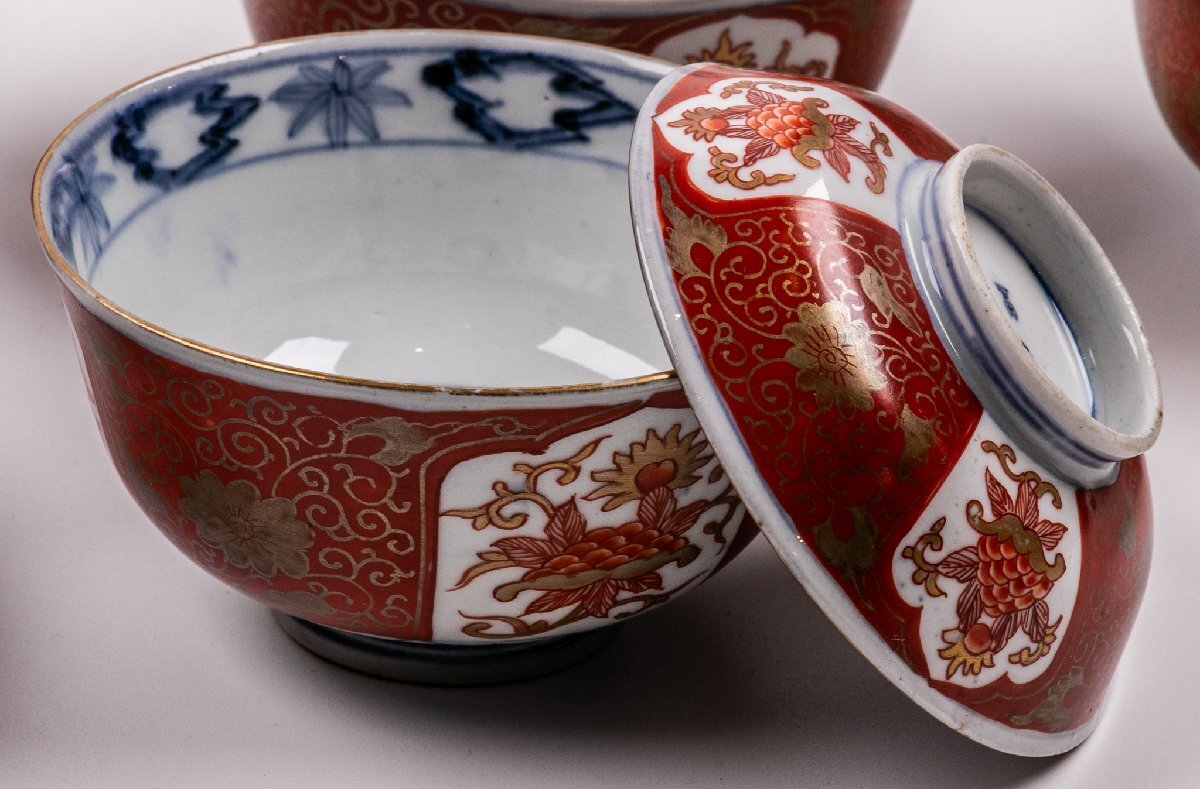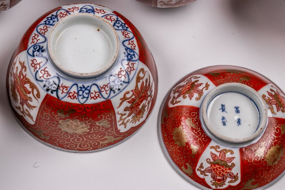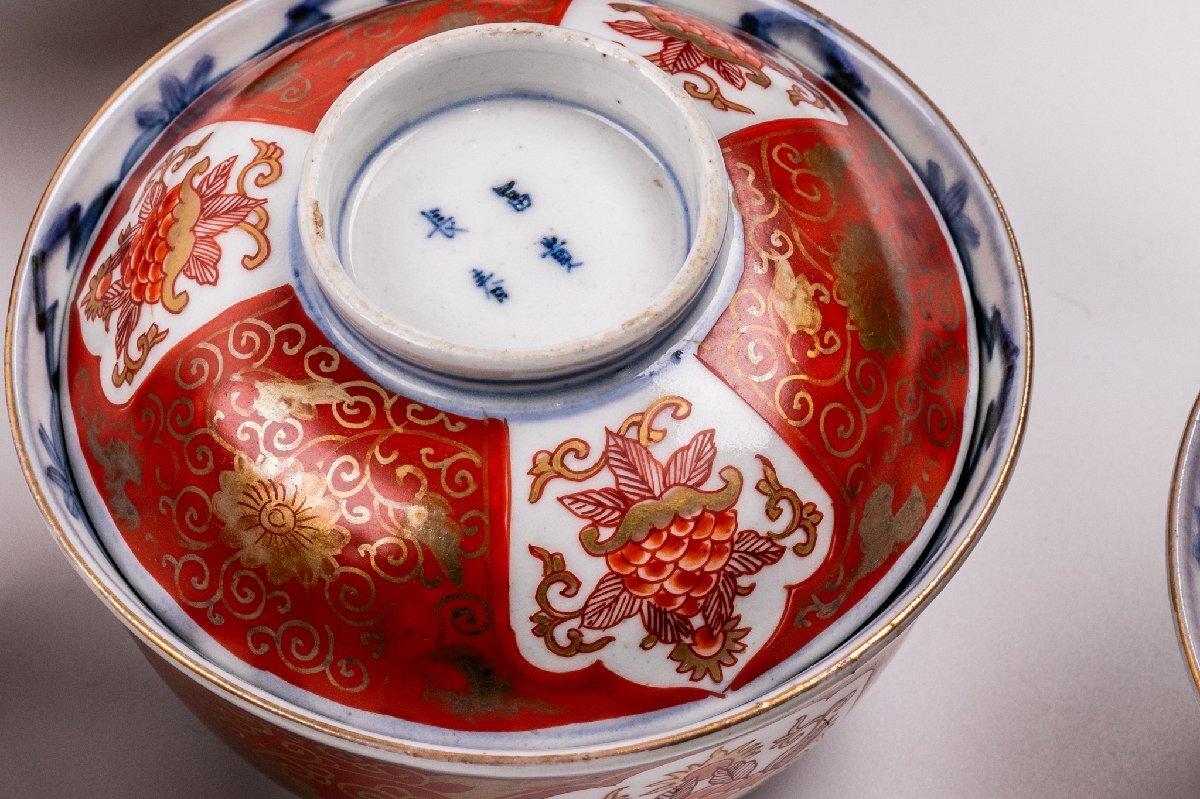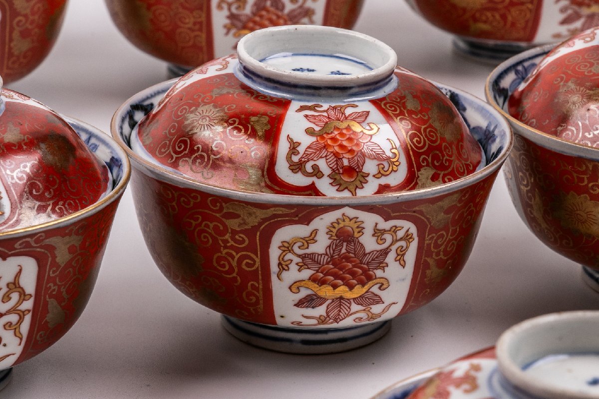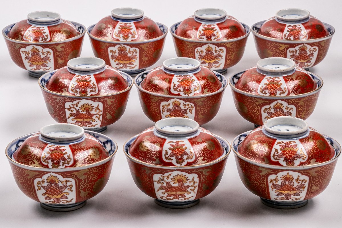 【うつわ】 古伊万里 染錦唐華雲龍文蓋茶碗 10客 明治時代 E1215A バラ売り可能です 古美術 骨董 古玩 陶磁器 和食器 日本料理 料亭