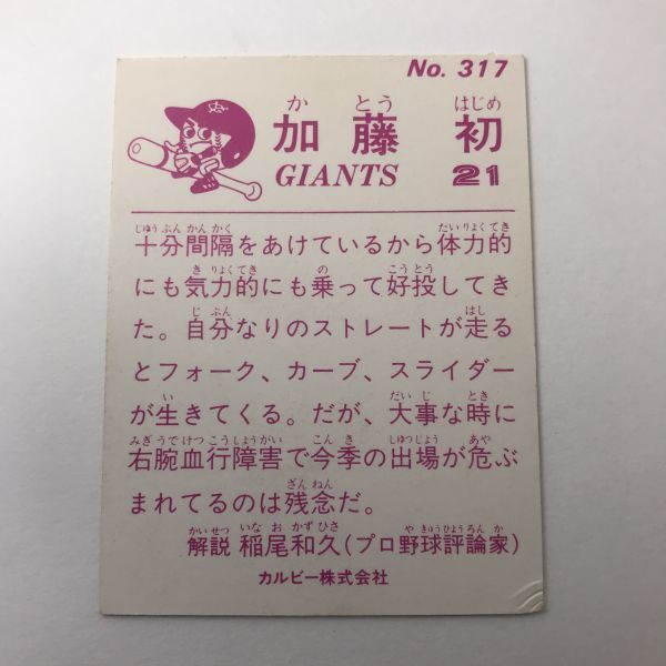 1983年 カルビー プロ野球カード 317番 巨人 加藤 83年   【管理NO:201-17】