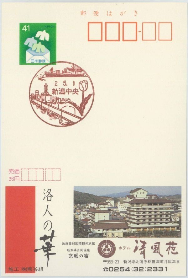 エコー☆月岡温泉・清風荘☆風景印・新潟・新潟中央・H2.5.1