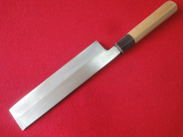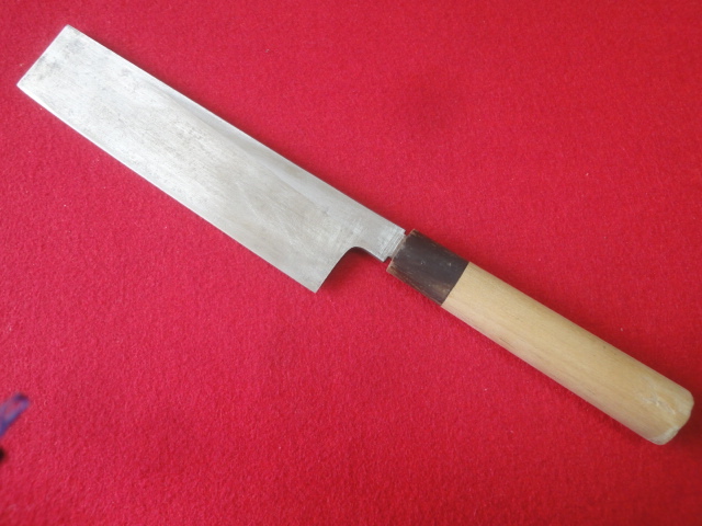 【源國行】関東型薄刃包丁 刃渡21㎝ 全長37.3㎝ 峰厚4.4mm ※片刃 中古品 全国一律送料1200円