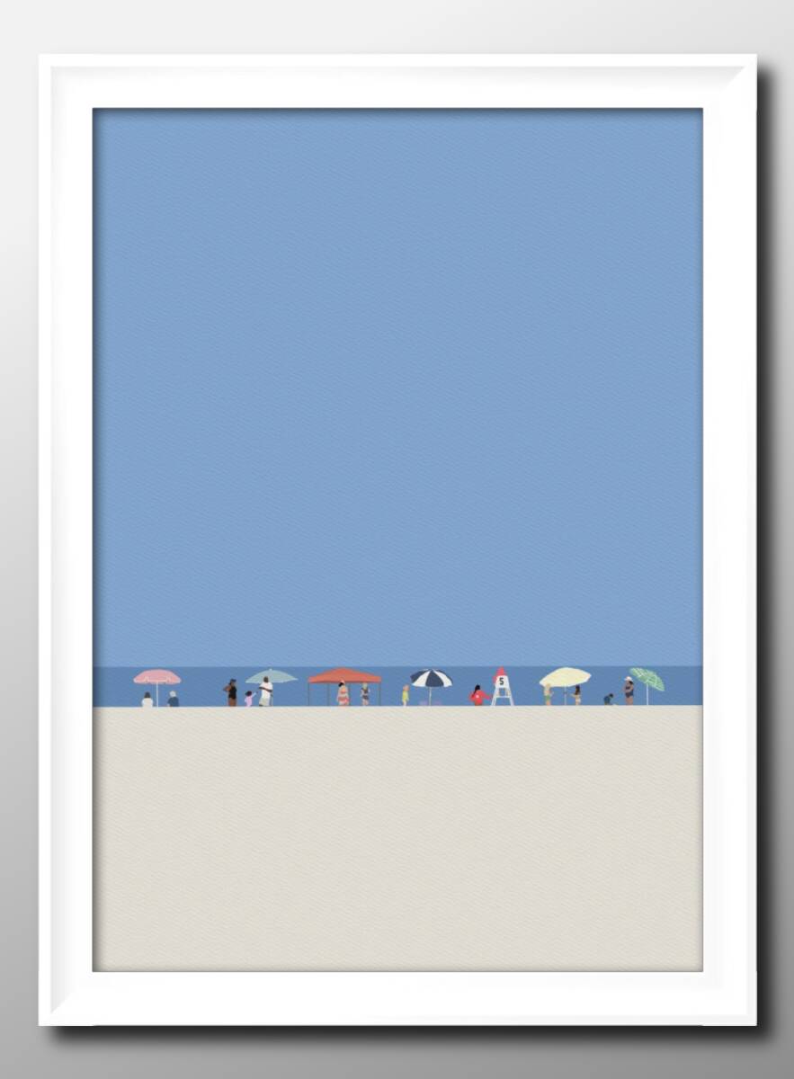 14612■送料無料!!アートポスター 絵画 A3サイズ『ビーチ ホライゾン 海 夏 浜辺 海水浴』イラスト 北欧 マット紙