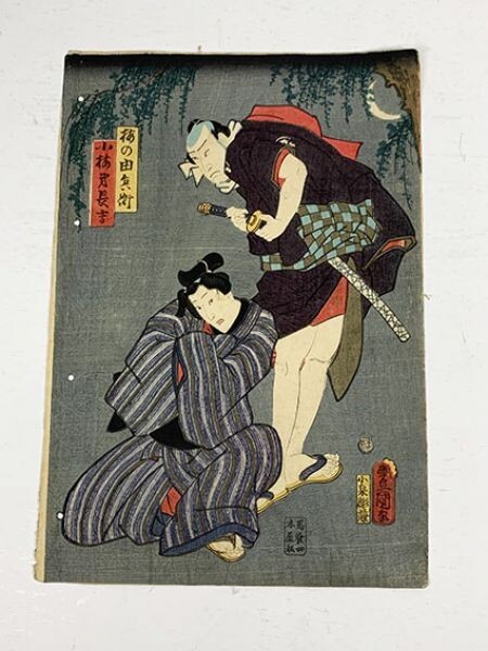 豊国三代「梅の由兵衛 小梅弟長吉」 37×25.6 錦絵 浮世絵 木版画 歌川豊国 Toyokuni III