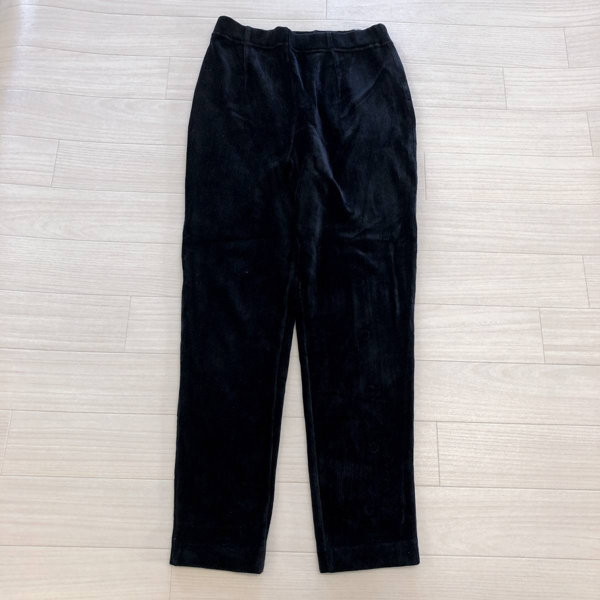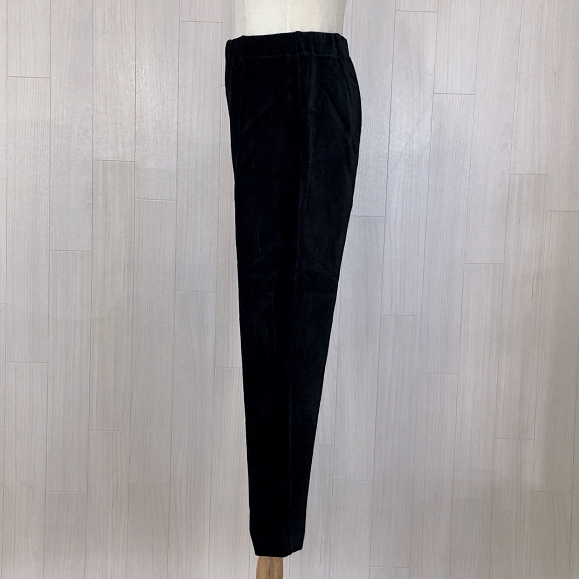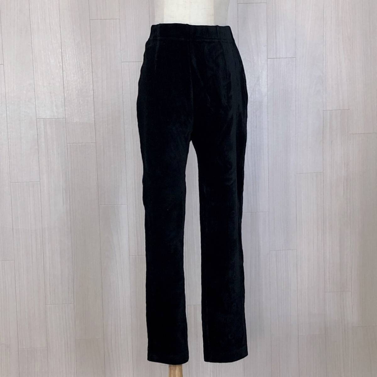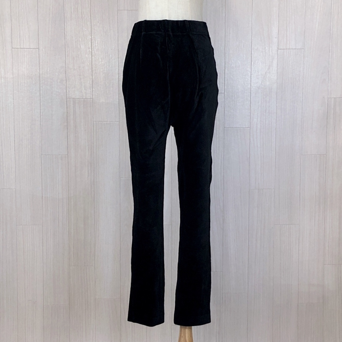 YZ0268 美品 courreges クレージュ レディース ボトムス カジュアルパンツ ロング丈 ストレッチ ベロア ブラック 黒 綿 コットン 上品 秋冬