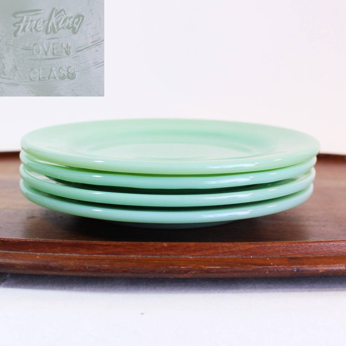 【送料無料】4枚セット! GLASS 初期刻印 1940~50年頃 ファイヤーキング FIRE KING ジェダイ サラダプレート RW GLASS ヴィンテージ