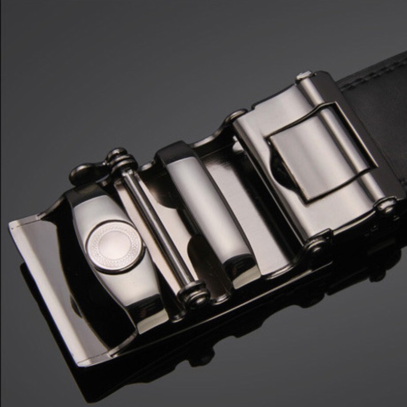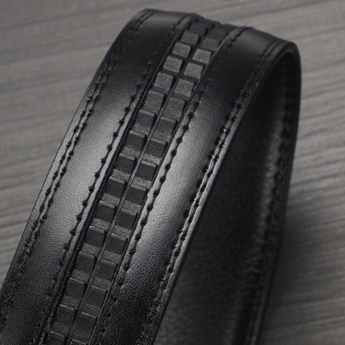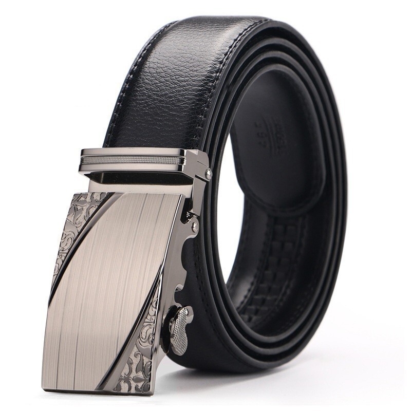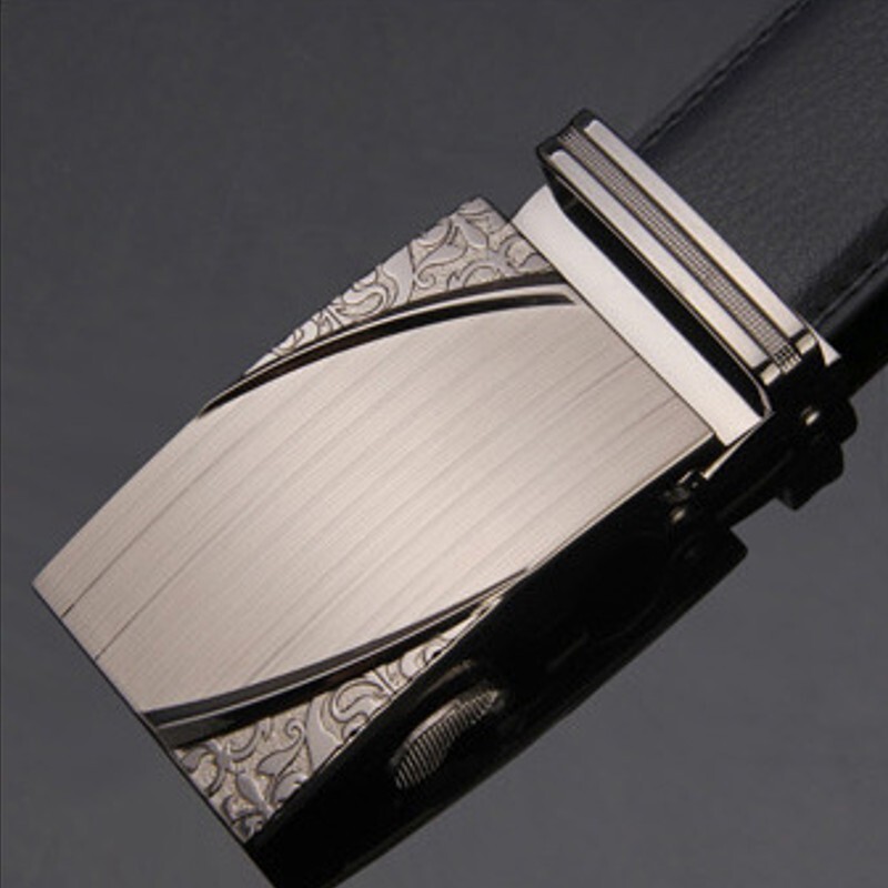 ベルト メンズ シルバー 両サイド 模様 オートロック式 ビジネス スライド式 ゴルフ バックルベルト スーツ ブラック 牛革 レザー DJ502