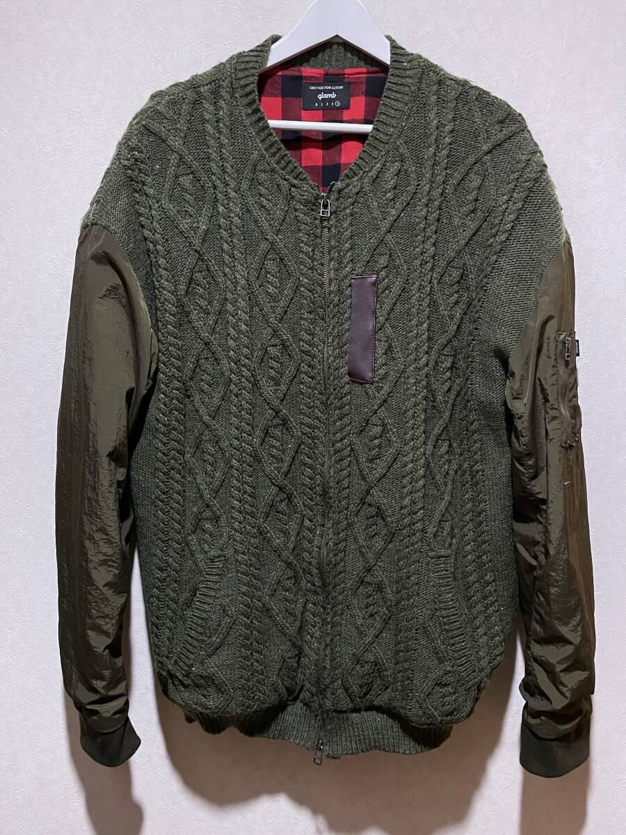 glamb グラム ★ ニット ケーブル編 MA-1 袖 切替 カーディガン ブルゾン ジャンパー ジャケット 5 希少サイズ 美品