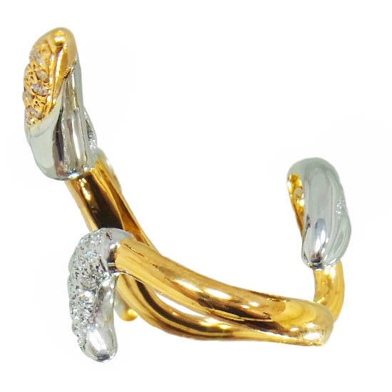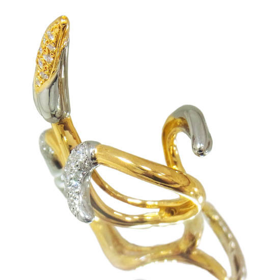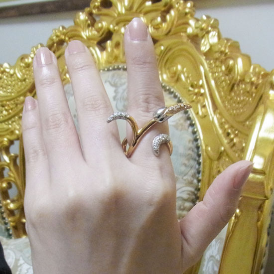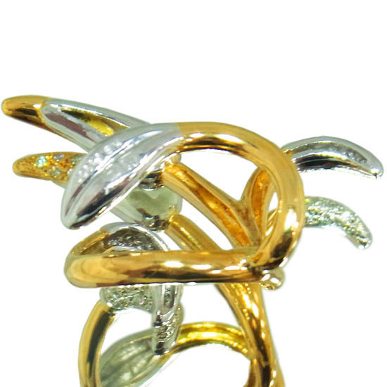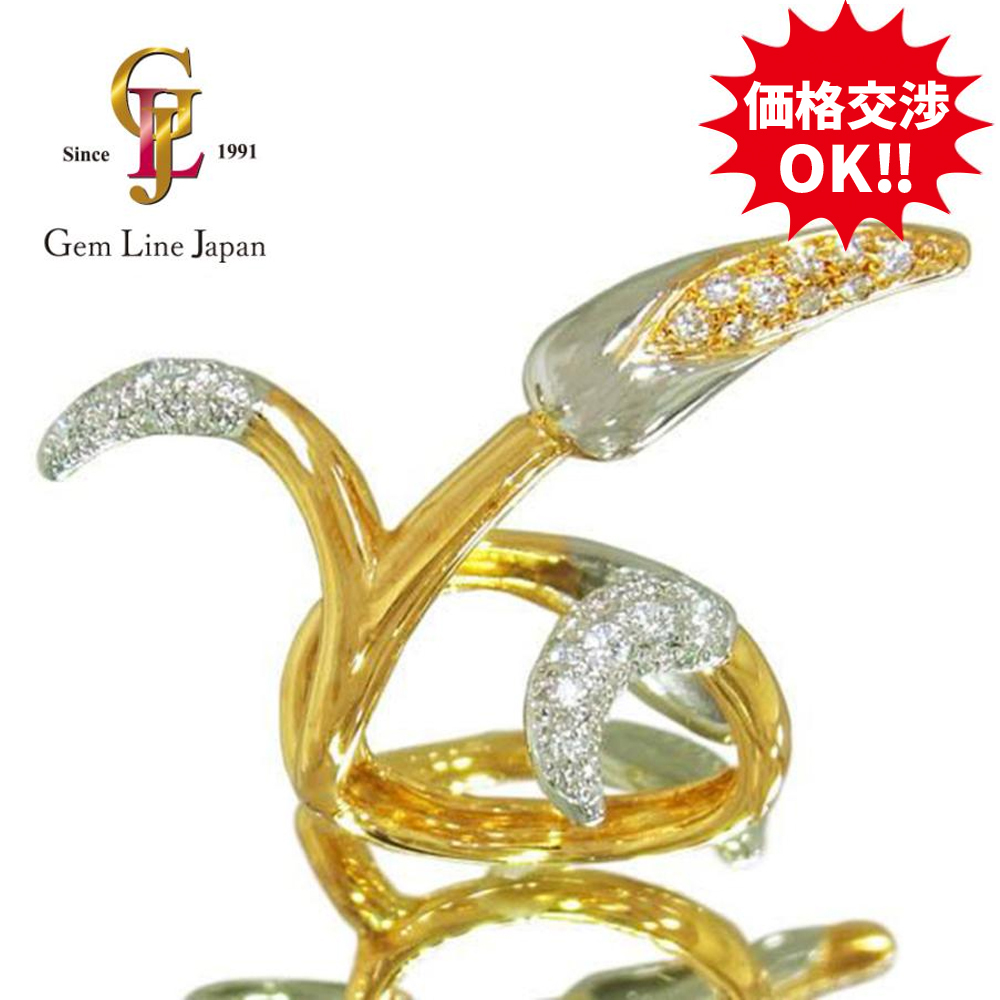 | コメント | 有名デザイナー、梶光夫さんがデザインしたイエローゴールドとプラチナが使用されたリングです。装着すると指に蔦が絡みついたような、遊び心あふれたデザインになっております。 | ||