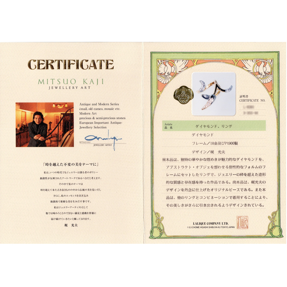 | 商品名 | 箱/保証書付き 梶光夫 ダイヤモンド K18/Pt900 リング | ||