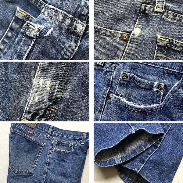 中古 使用感あり (フロントポケット、股や裾にスレほつれ、 左バックポケット付け根にキズ穴)。 (写真参照)