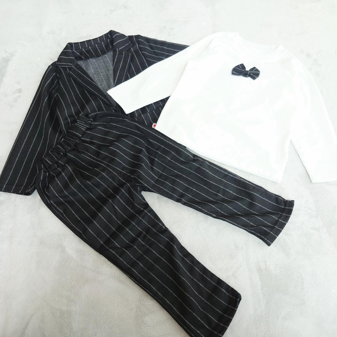 季節に応じた着回しができる、便利な男の子用スーツセットです。 暑い日には長袖シャツと長ズボンのシンプルスタイルで、寒い日にはジャケットを羽織ってフォーマルに。 ♪