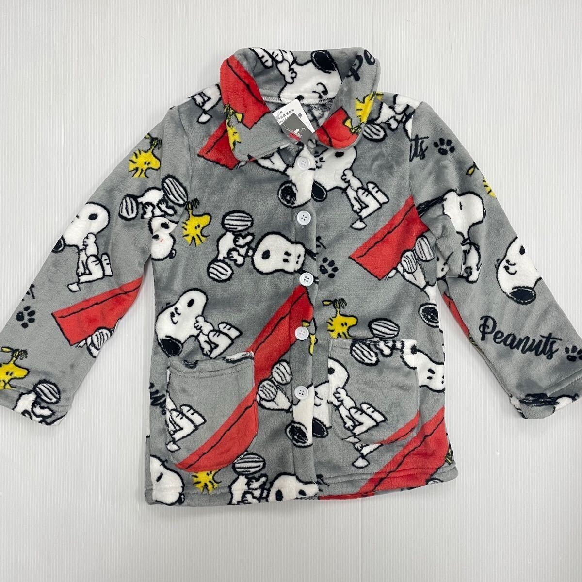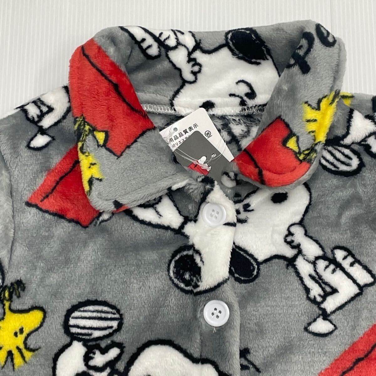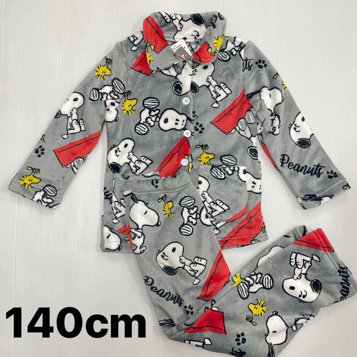 新品63442 スヌーピー140cm グレー ジュニアフリース前開き長袖フランネルパジャマ 前ボタン ルームウェアあったか素材男女兼用