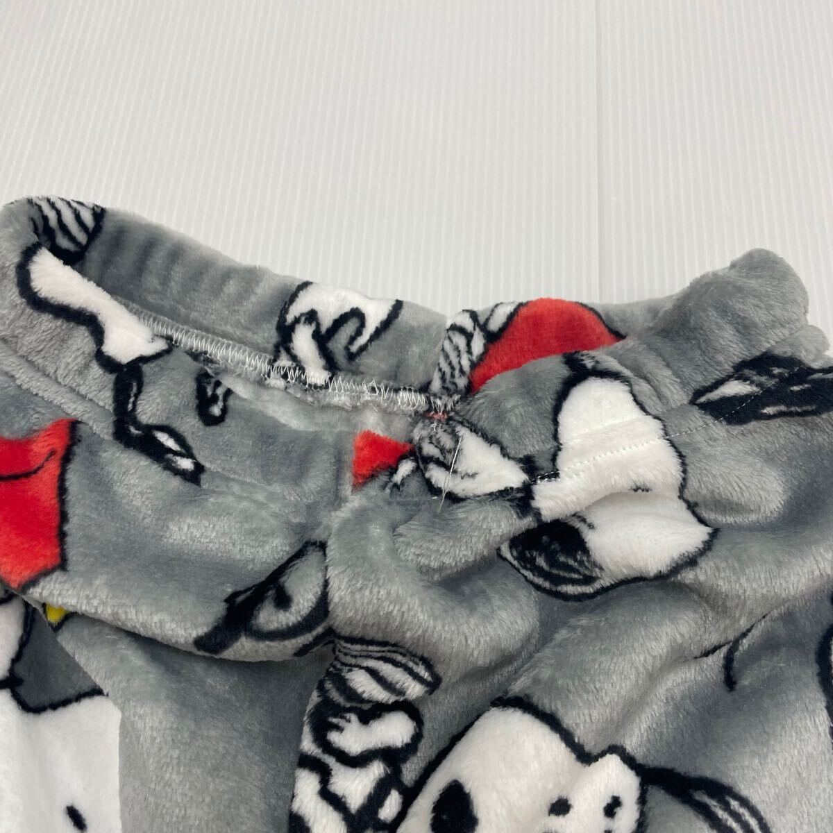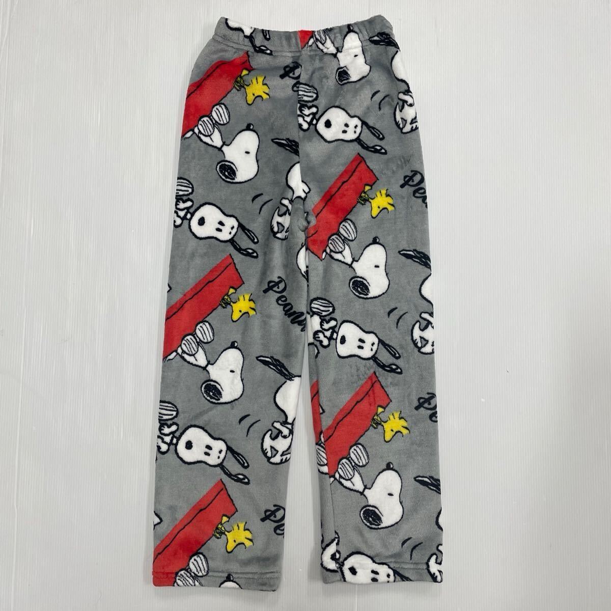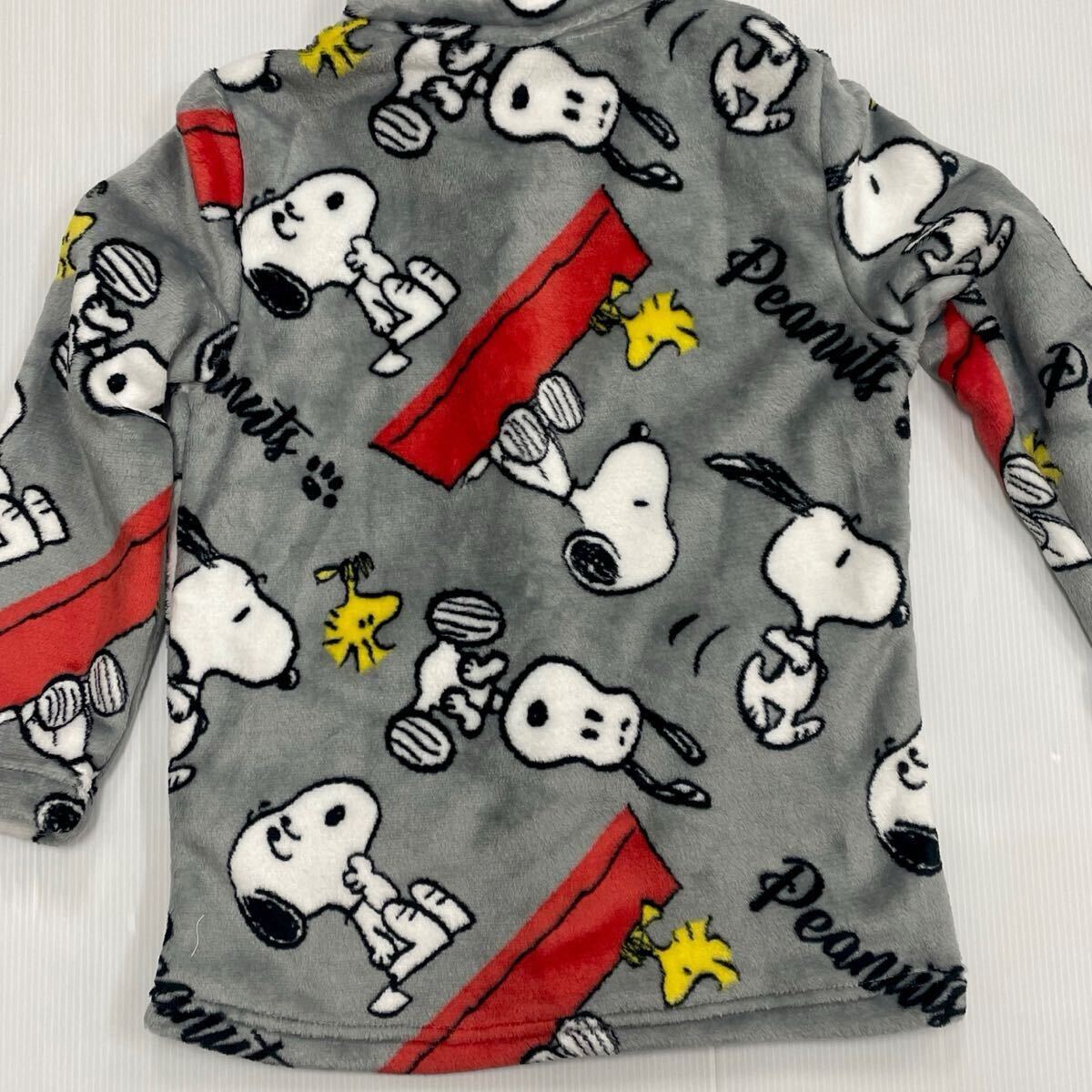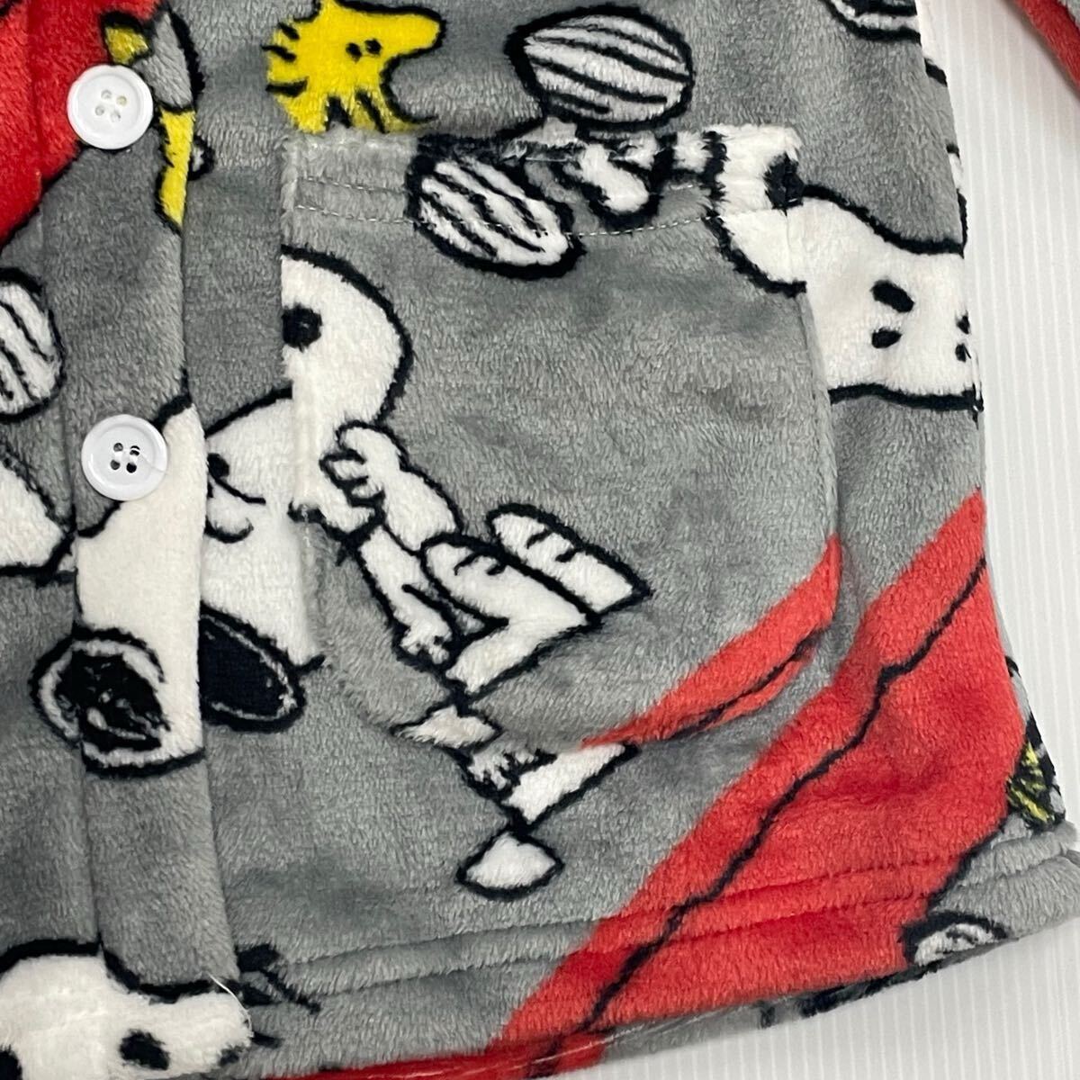 新品63442 スヌーピー140cm グレー ジュニアフリース前開き長袖フランネルパジャマ 前ボタン ルームウェアあったか素材男女兼用