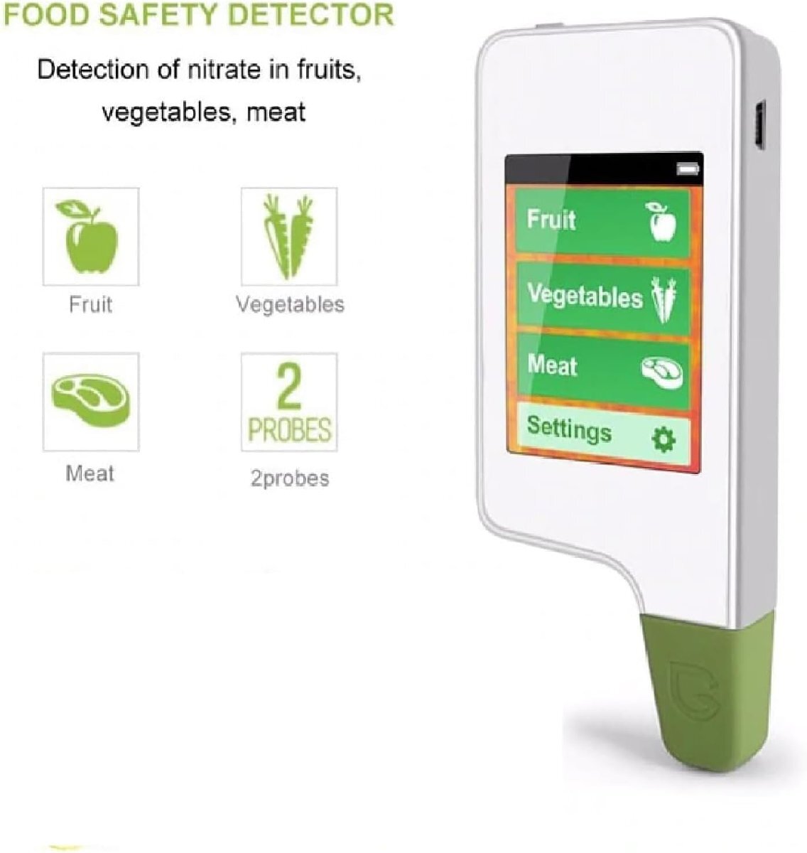 食品健康硝酸塩検出器、2つのプローブを備えた果物農業残留物テスター、測定時間: 3秒/測定誤差: 食品の場合10%未満