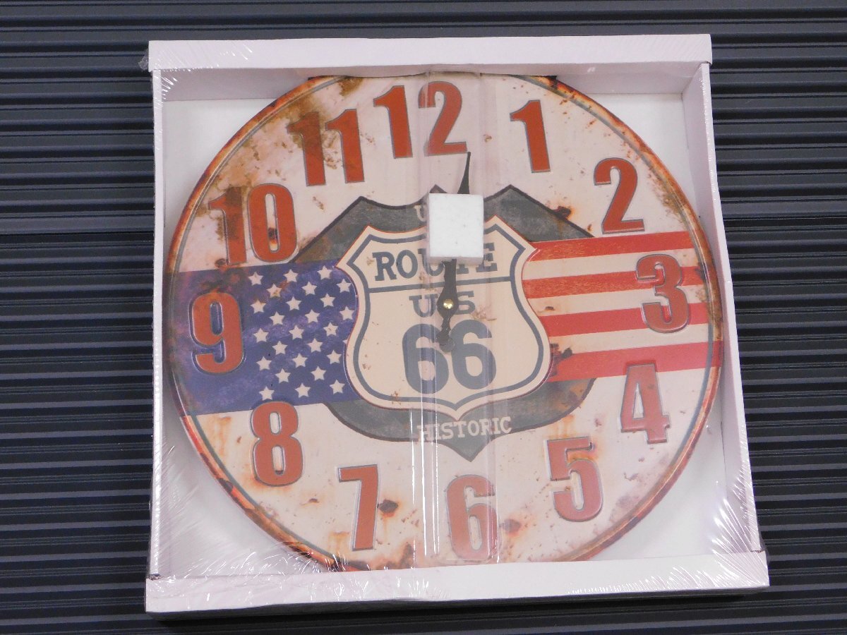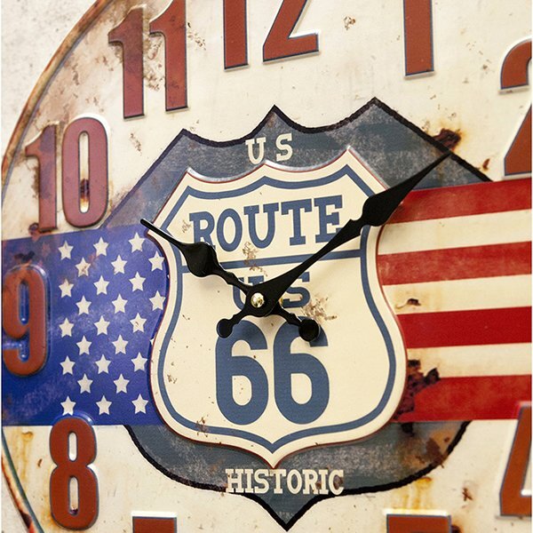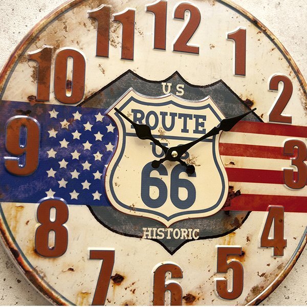 【HISTORIC】※《アンティークエンボスクロック・US ROUTE66》 アメリカン雑貨 ブリキ看板 メタルサイン 時計