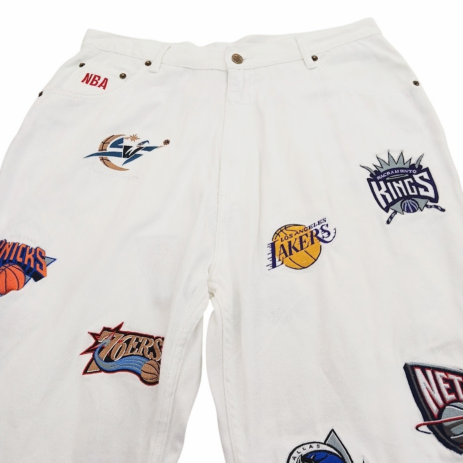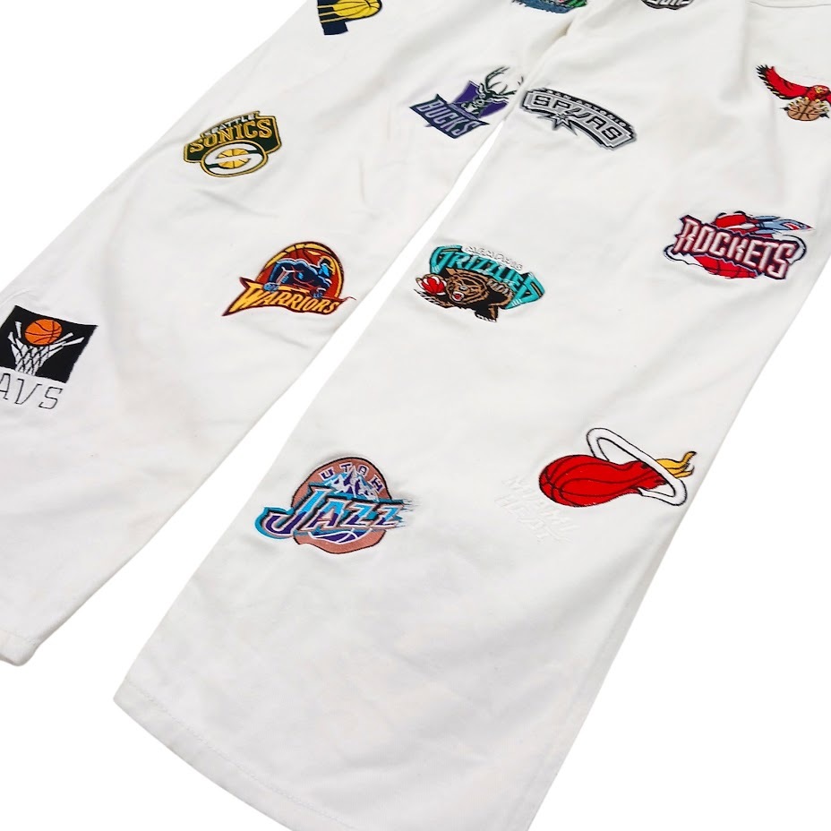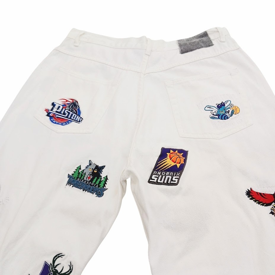 NBA UNK バスケットボールチーム オールスター ロゴ刺繍 ホワイト デニムパンツ サイズ 34