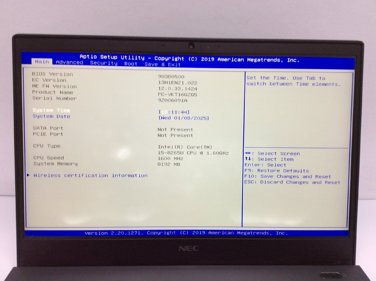 ジャンク/ NEC PC-VKT16GZG5 Intel Core i5-8265U メモリ8.19GB ストレージ無し 【K06298】