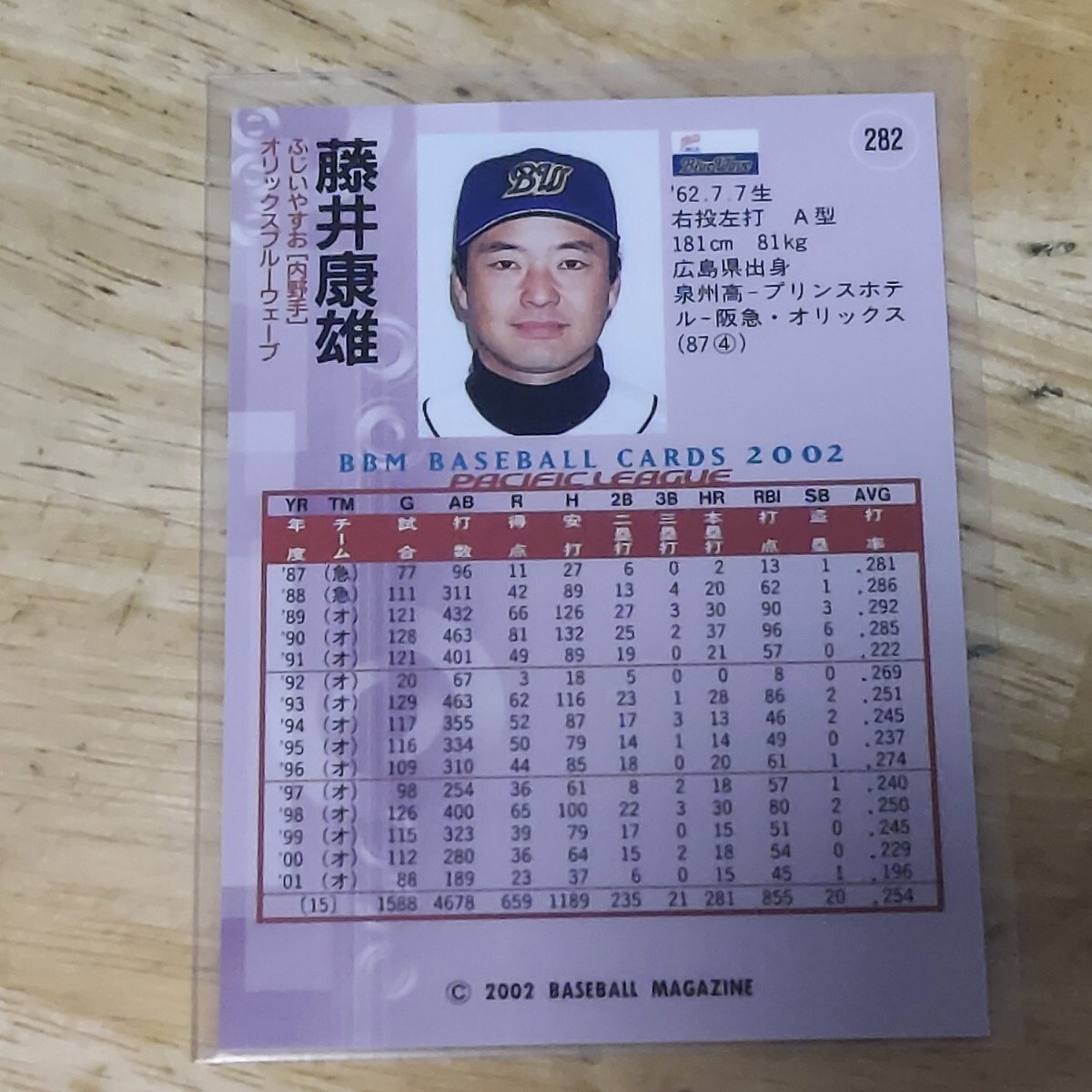 BBM プロ野球カード プリント銀箔サイン入りカード 藤井康雄 オリックスブルーウェーブ