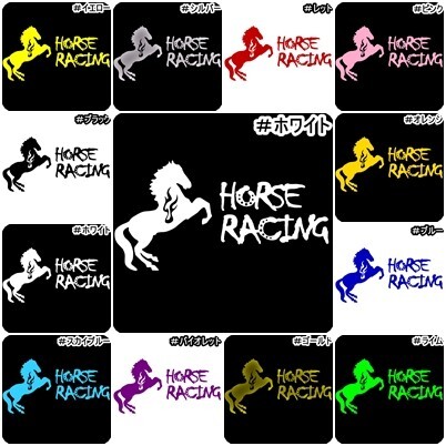 ・商品名 《JK18》15.0×7.8cm【HORSE RACING-B】G1、有馬記念、JRA、ケイバ、日本ダービー、馬術部、馬具、乗馬ステッカー ・素材 屋外耐候性フィルム、フィルム厚=0.075mm、塩ビ製 ・ステッカータイプ カッティングステッカー(文字や柄が残るタイプ) |