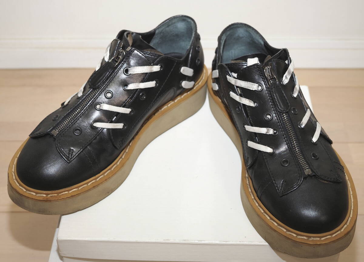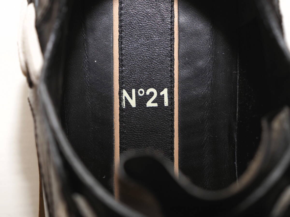 N°21 ヌメロヴェントゥーノ 16SSフロントZIPハトメデザイン厚底シューズ42黒 Italy製