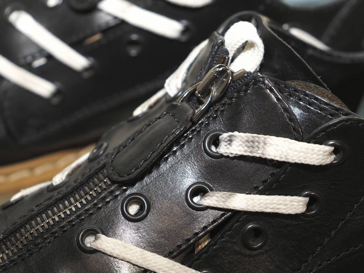 フロントZIPのつくりで、シューレースの通し方を変えることで印象を変えることができます。