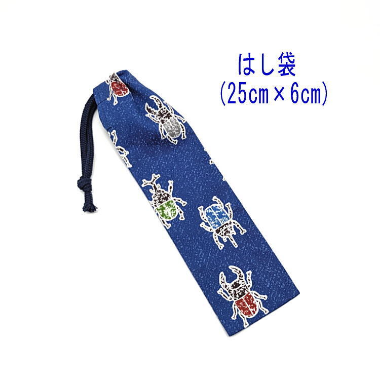 はし袋・大(25cm×6cm)【カブトムシ&クワガタ柄 ブルー】箸袋 箸入れ はし入れ マイ箸 箸ケース ハブラシ入れ 細長巾着 日本製 昆虫