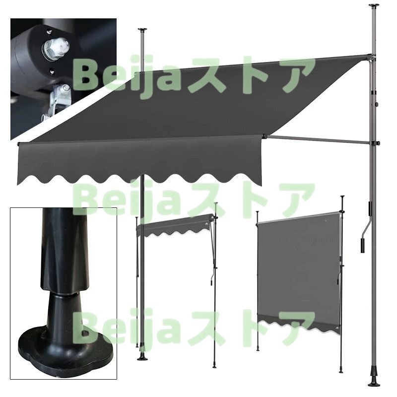 ーニングテント 幅250cmオーニング 巻き取り式 サンシェード オーニング ひさし紫外線シェード日よけ2.15M-3.1M高さの調節が可能