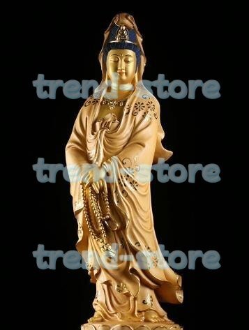 密教法具 寺院用仏具★ 仏像 音菩 音像立像 高档天然杜木雕 金泥格 音 木制雕刻 世音菩 自在菩 除厄
