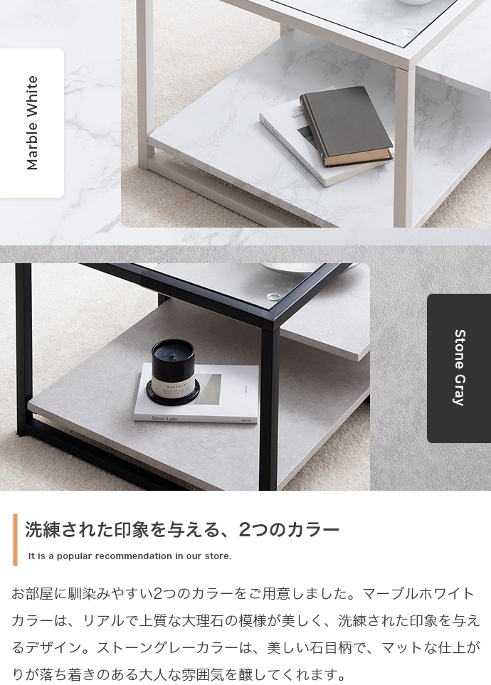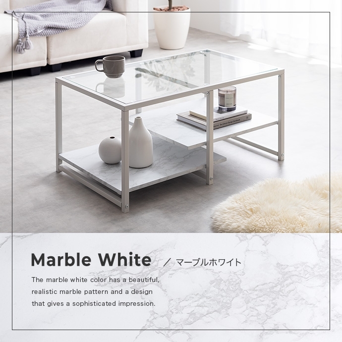 ガラス天板とストーン柄が目を惹く『Noy(ノーイ)』センターテーブル。