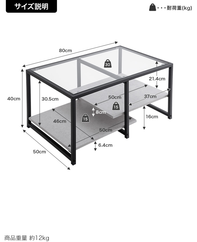 【耐荷重】天板:約30kg 、各棚板:約15kg