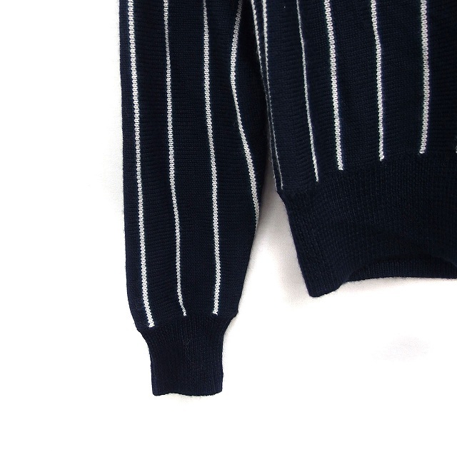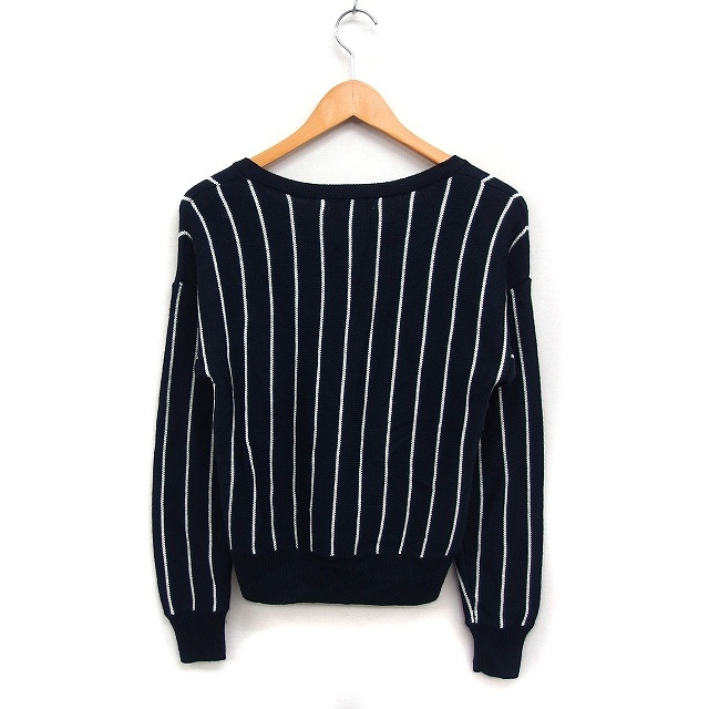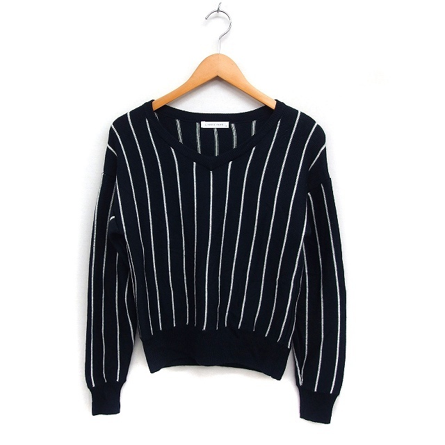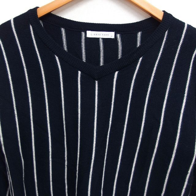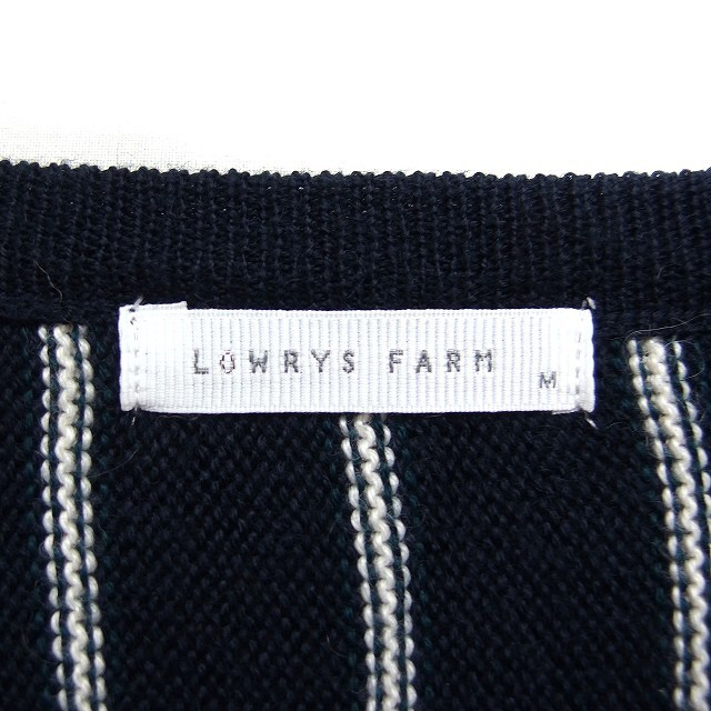 ローリーズファーム LOWRYS FARM Vネック ニット セーター 長袖 ストライプ柄 ウール混 M ブラック 黒 /FT2 レディース