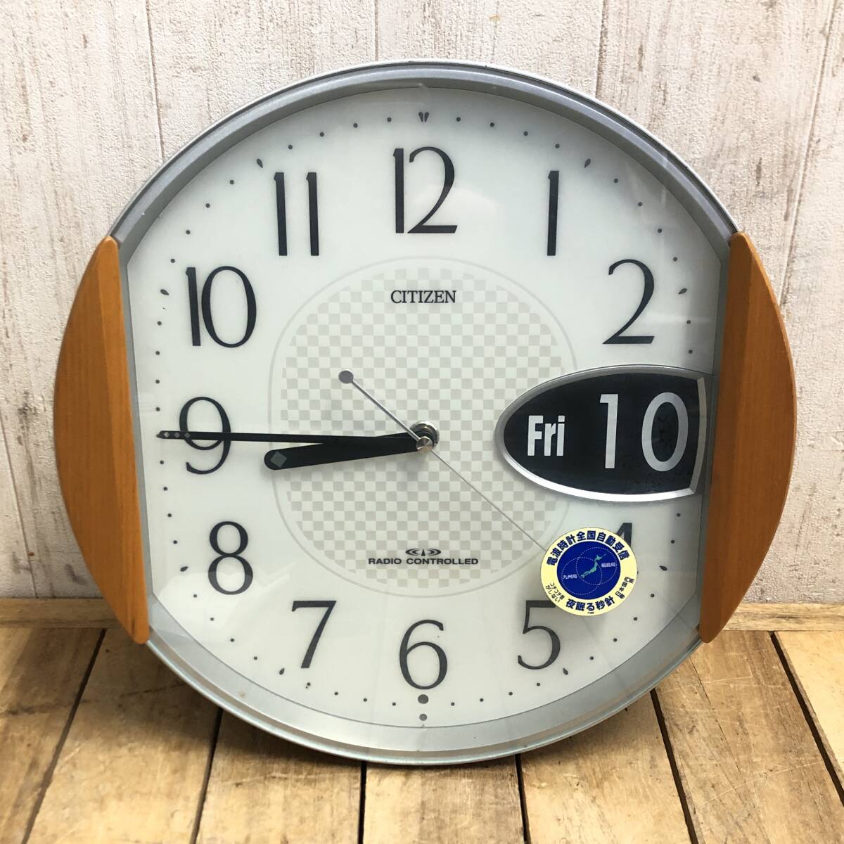 | *【稼働OK】CITIZEN 4FY609 電波時計 丸型 壁掛け時計 掛時計 木地 デイデイト クォーツ シチズン リズム時計 |