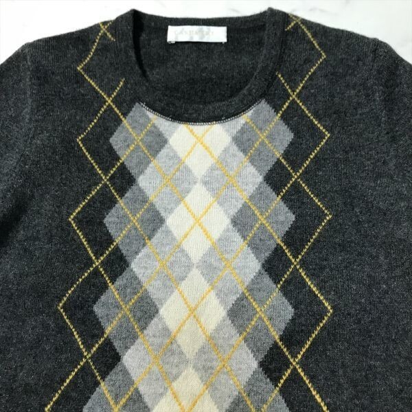 《良品◎》UNIQLO ユニクロ★上質カシミヤ100%*アーガイル柄*ニット*セーター*グレー*サイズM(LW1387)◆S60