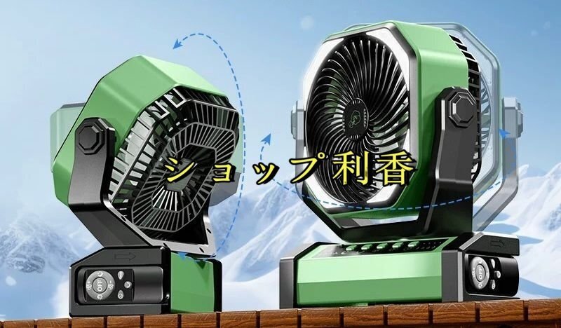 キャンプ 扇風機 20000mAh大容量 最大60時間連続使用 自動首振りリモコン付き 風量4段階調節 16枚高輝度LEDライト搭載 扇風機 持ち運び便利
