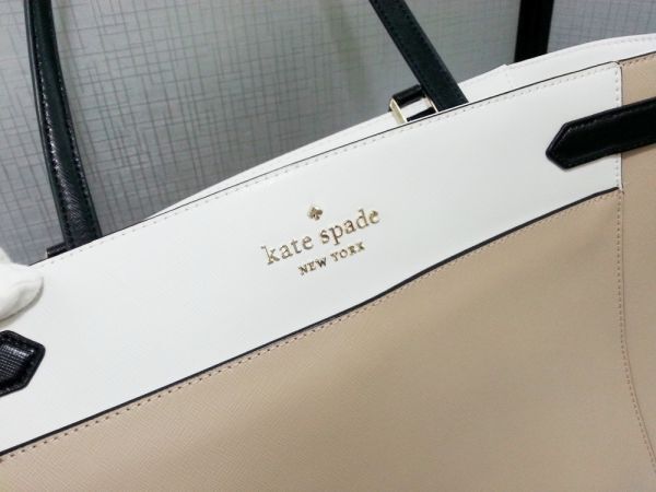 「Kate spade New York ステイシー カラーブロック ラップトップ トート ウォームベージュマルチ」