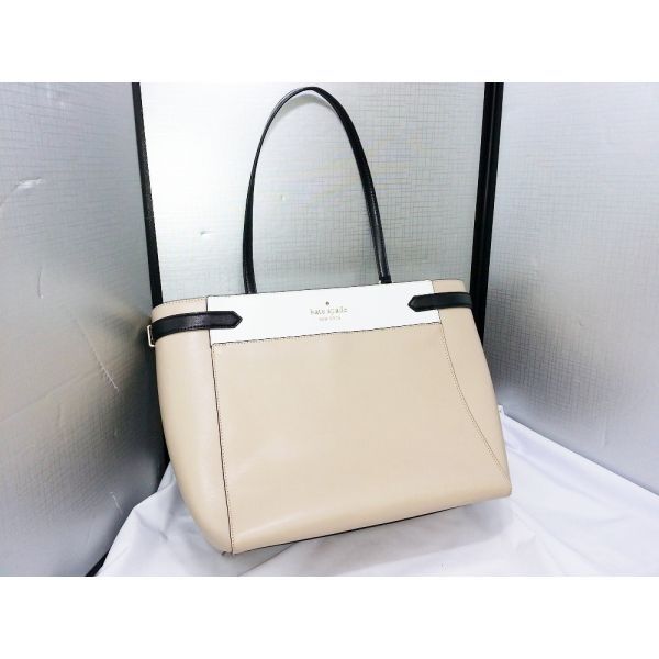 【中古・美品】Kate spade New York ステイシー カラーブロック ラップトップ トート ウォームベージュマルチ ケイトスペード | ||