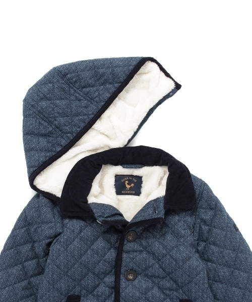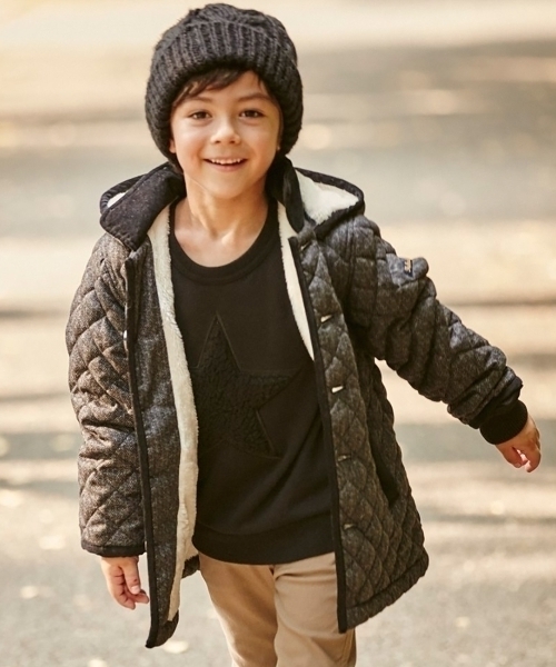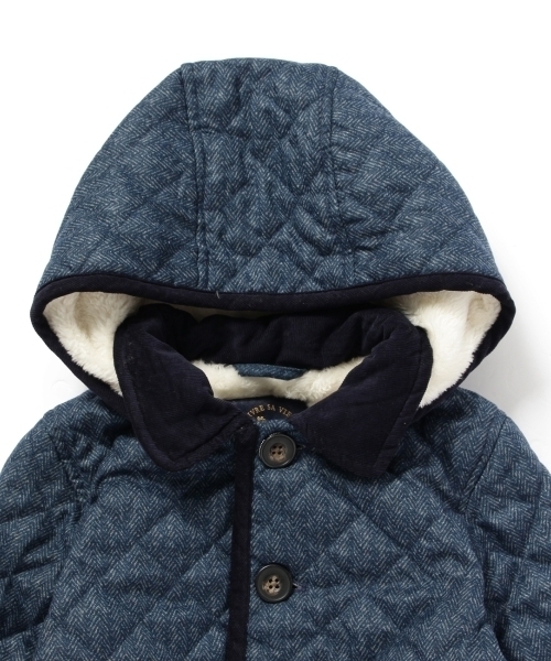 もこもこの裏ボアが付いたキルティング素材のジャケット。