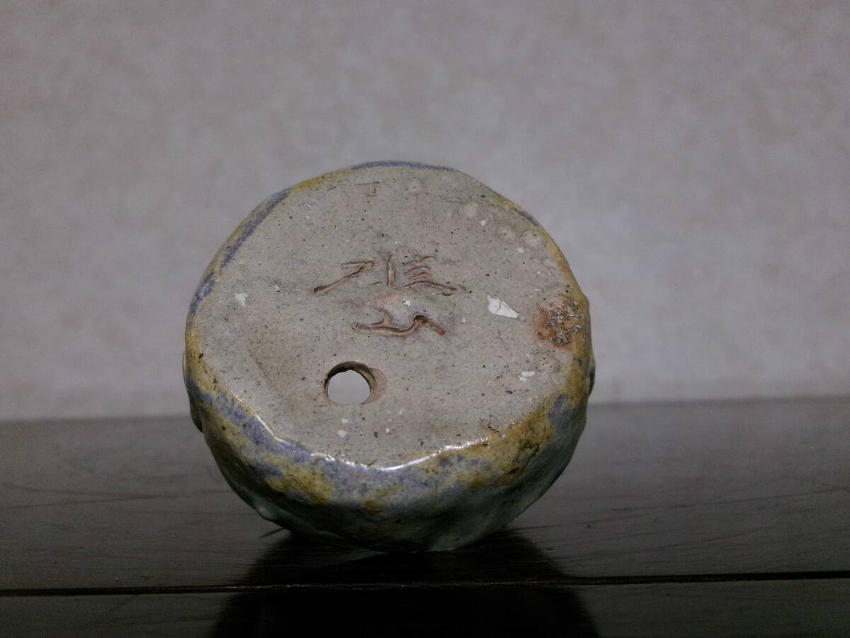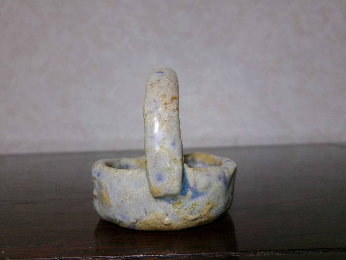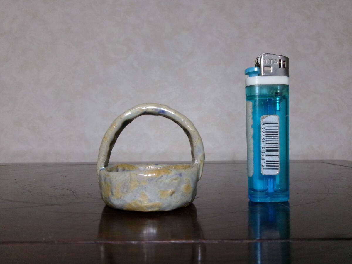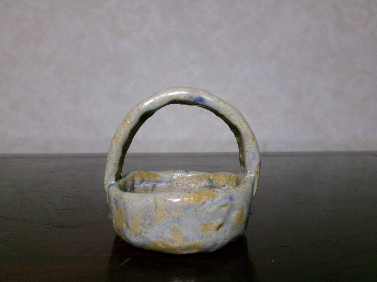 超希少 珍品 時代感上々 添え コレクションにも 味わいある造形 雄山 藤掛雄山 合掛釉手提げ籠型小鉢 幅5.7センチ 時代品 | |||||||||||