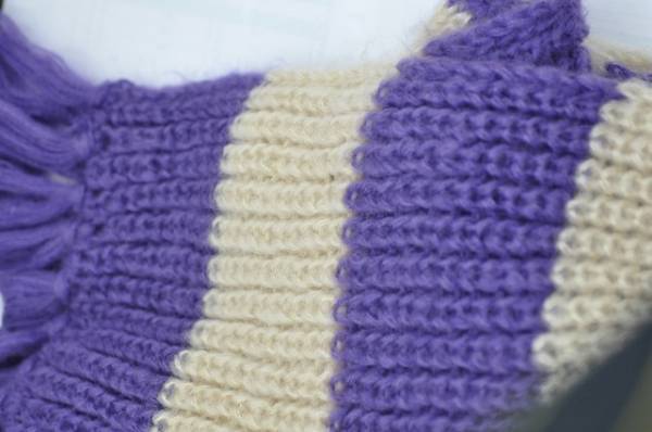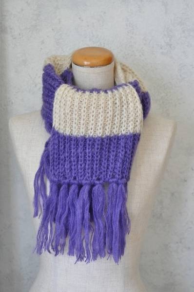 太いボーダーにざっくり編まれたマフラーです。