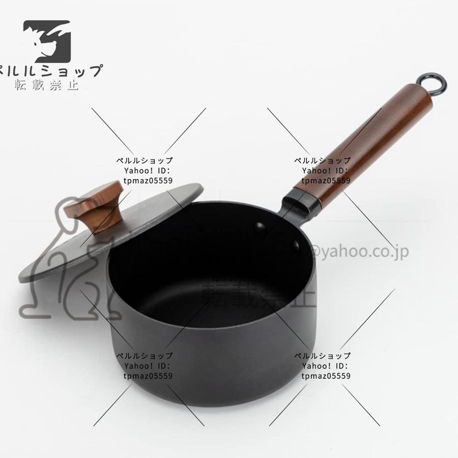 片手鍋 鍋 16cm IH?ガス対応 手作り鉄鍋 鍋蓋付 鉄製 洗いやすい ブラック