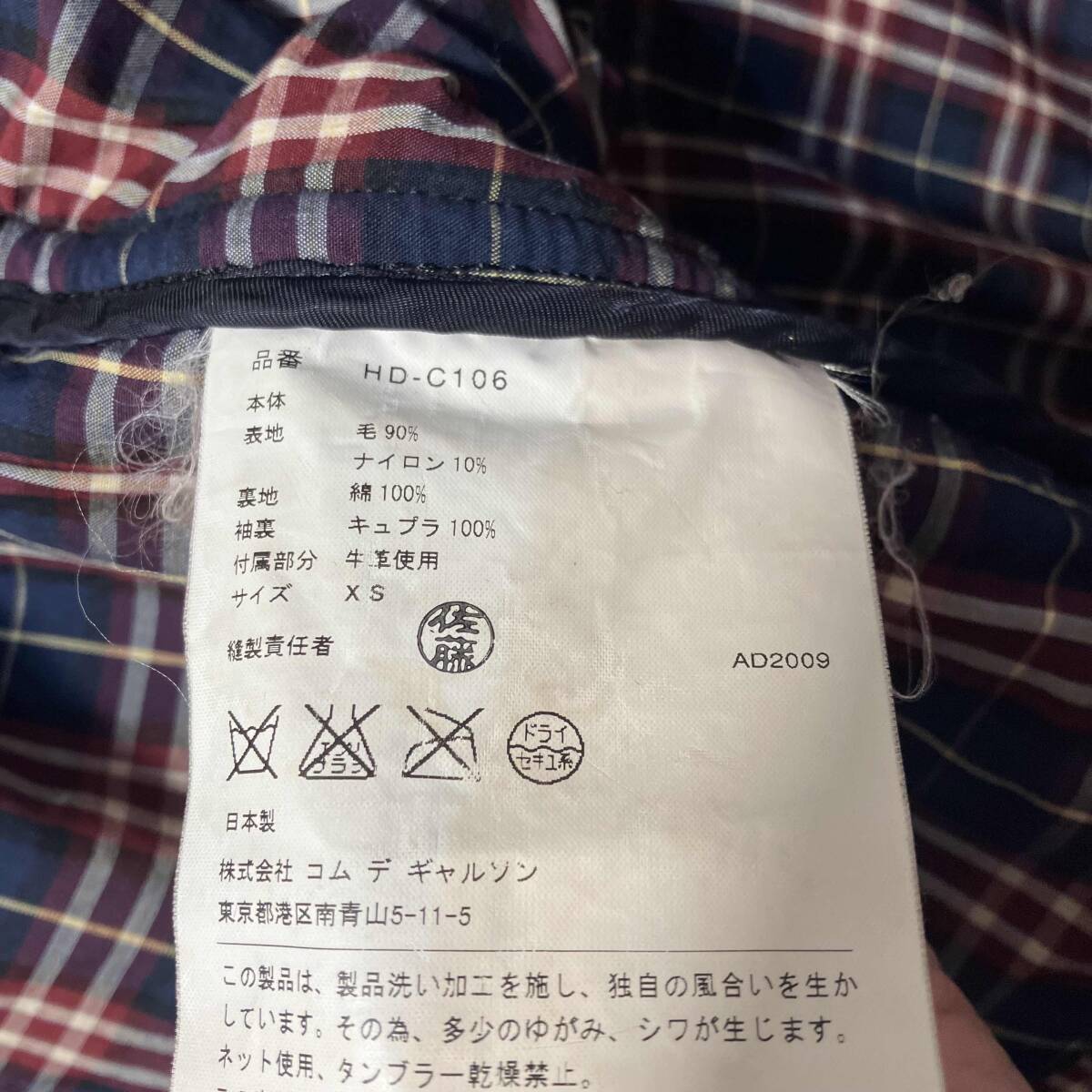 服 【ブランド名】 ・COMME des GARCONS HOMME 【アイテム名】 ・ダッフルフーディコート 【サイズ】 表記サイズ:XS 着丈 約67㎝ 袖丈 約61.5㎝ 身幅 約48㎝ 肩幅 約40㎝ 【カラー】 ・NAVY 【状態】 ・首元汚れ、毛玉の箇所有り |