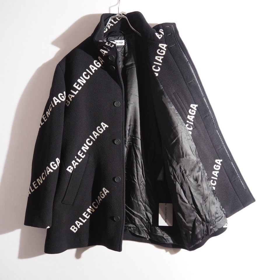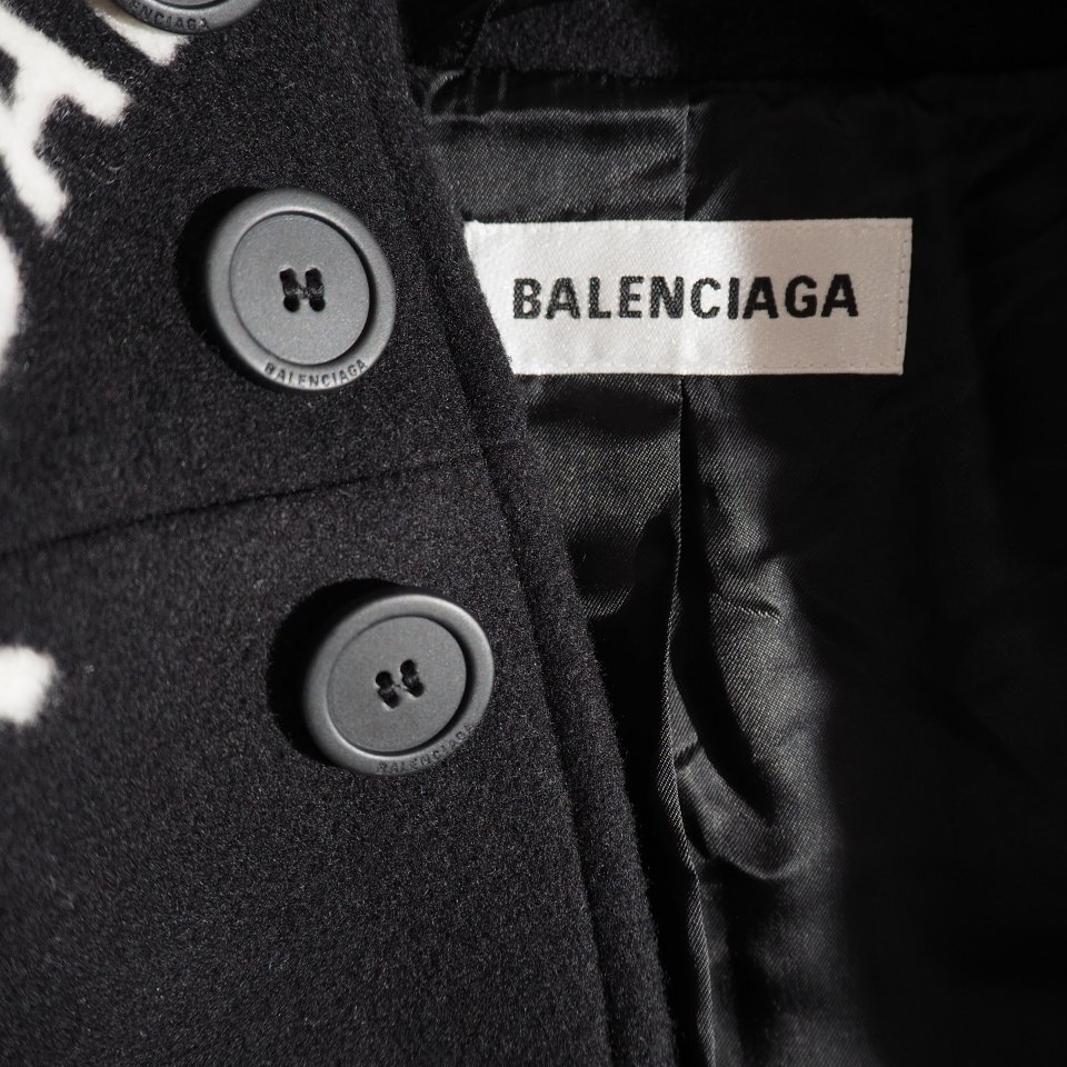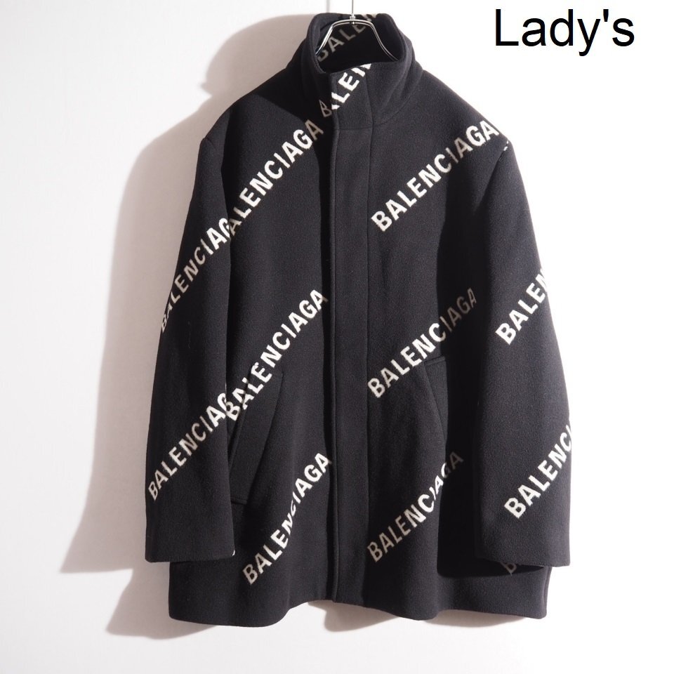 P5362P ▼BALENCIAGA バレンシアガ▼ 20AW ロゴ ウール カシミヤ コート ブラック 36 オーバーサイズ / レディース 秋冬 rb mks