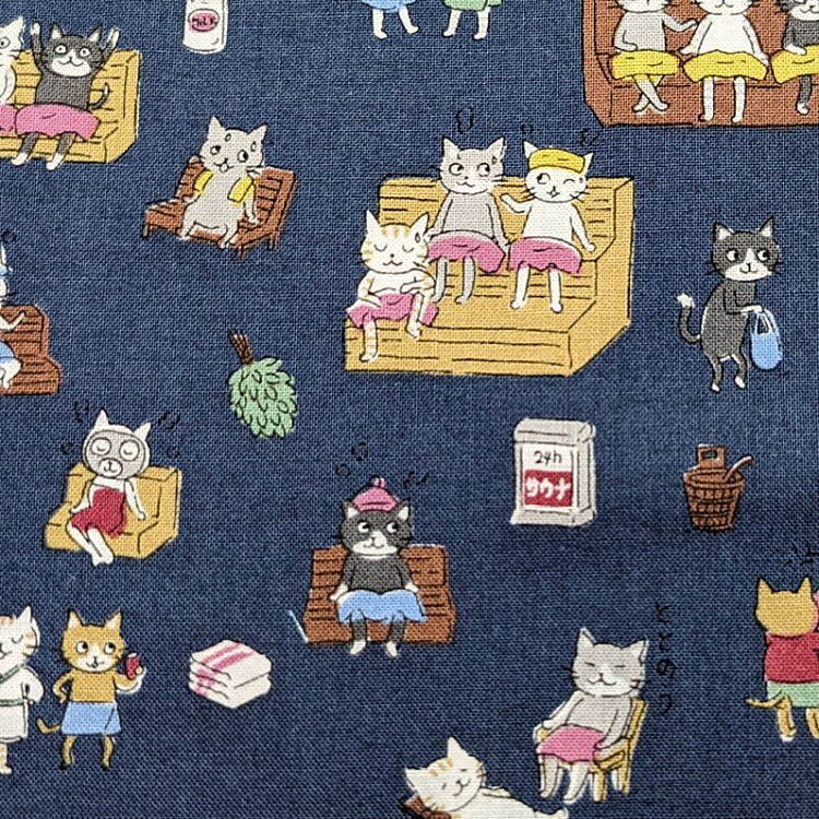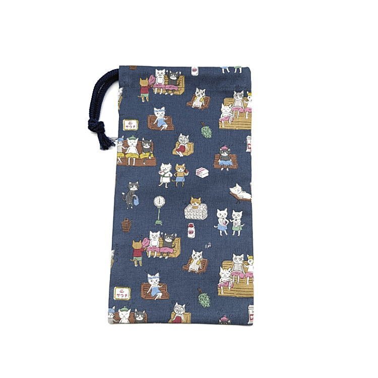 カトラリー袋・巾着袋 長方形【ととのうサウナネコ柄 ネイビー】カトラリーケース 箸袋 はし袋 コップ袋 ポーチ ねこ 猫 にゃんこ