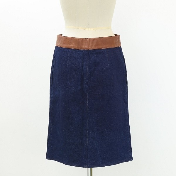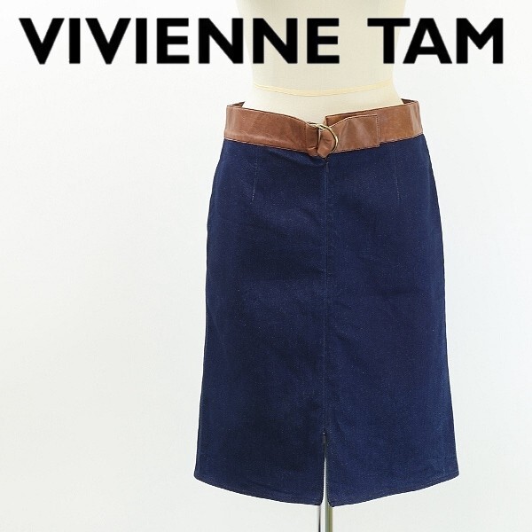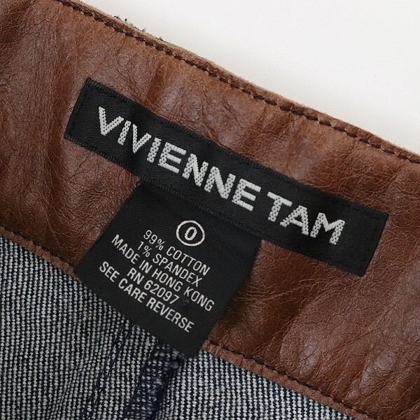 | ◆VIVIENNE TAM ヴィヴィアンタム レザー使い ストレッチ デニム Wジップ スカート インディゴ×ブラウン 0 | |