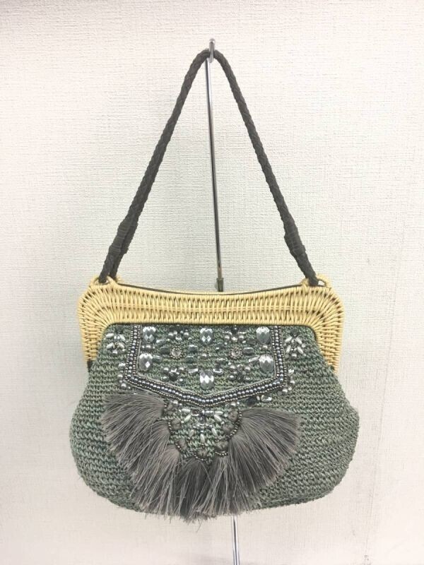 NZ415●alfajill ビーズ装飾カゴバッグ●グリーン