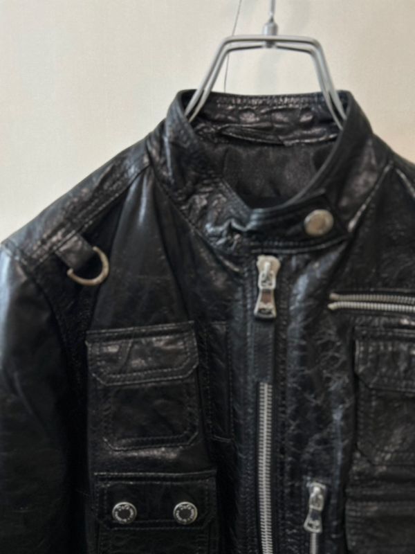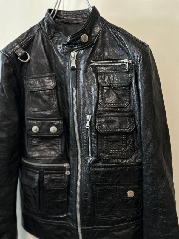 W0068★16 高級 D&G DOLCE&GABBAN ドルチェ&ガッバーナ vintag archive レザー 短丈 シングル ライダース タクティカルポケット 黒