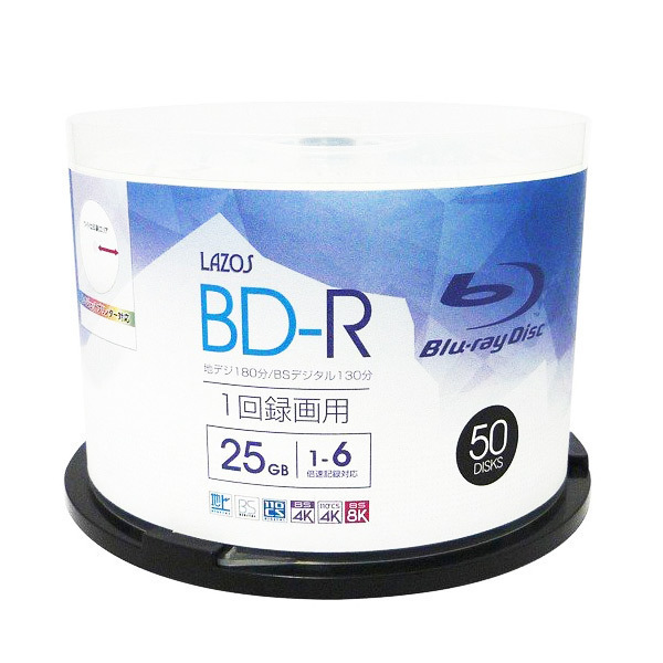 送料無料 BD-R ブルーレイ 録画用 ビデオ用 50枚組 CPRM対応 25GB 6倍速 Lazos L-B50P/2679x6個セット/卸