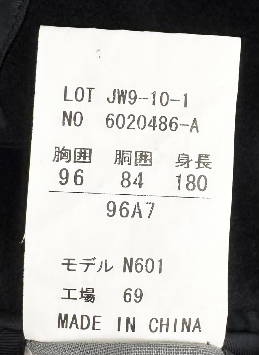 | サイズ | 【表記】 96A7 (胸囲 96/胴囲 84/身長 170) (L相当) 【実寸】 着丈 103cm 身幅 60cm 裄丈 88cm ※ラグラン仕様で肩幅・袖丈の計測ができません。 ※多少の誤差はご了承下さい。 |